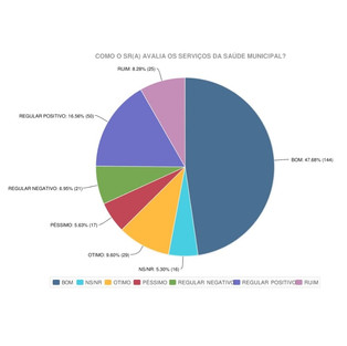 O estudo também avaliou alguns dos serviços básicos oferecidos pela Prefeitura, como saúde, limpeza pública e abastecimento de água. Em geral, os resultados foram positivos. Para 59% da população, o serviço de coleta de lixo é bom, enquanto 20% acha ótimo e 8% não soube responder. Já em relação ao abastecimento de água, somados os resultados, 79% consideram o desempenho positivo.